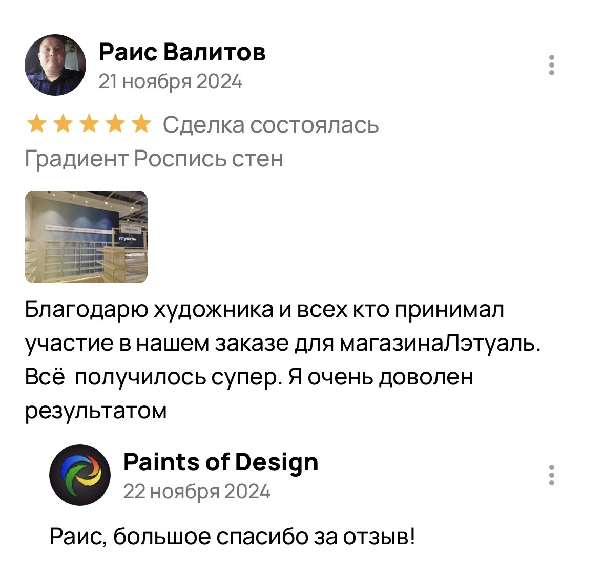 Градиентная покраска стен в магазине Л'Этуаль